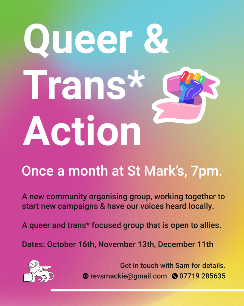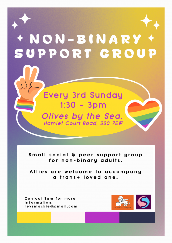 On February 7th at St Mark’s Southend (Church & Hall) we’ll be holding a Trans Health Event with clothes & binder swap; where we’ll be looking at holistic health & wellbeing. This’ll be between 11am – 2pm, with set up taking place from 10am.