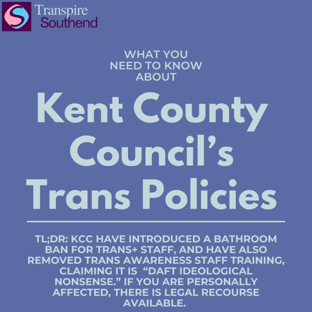 I am writing to draw your attention to Kent County Council’s recent decision to archive and remove Trans Awareness EDI training on 27th June 2025 and to instruct transgender staff to use toilets corresponding to their sex assigned at birth or a single gender-neutral facility. These steps were taken without meaningful consultation, transparency or an Equality Impact Assessment, and in breach of the Equality Act 2010 and the Public Sector Equality Duty. They undermine the dignity and safety of trans employees and set a worrying precedent for other local authorities.