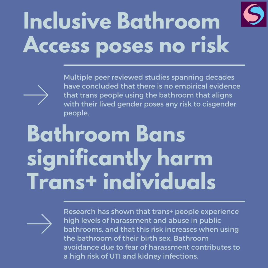 The Equality Act 2010 only permits the exclusion of trans+ people from single-sex services when this is a proportionate means of achieving a legitimate aim. There is no evidence that trans+ people using the bathroom of their lived gender poses any risks to cisgender people, and plenty of evidence to suggest that such bathroom bans negatively impact trans+ people, as well as disproportionately impacting people who are not considered traditionally feminine, such as butch lesbians and ethnic minorities. How has the decision then been reached that this is a proportionate means of achieving a legitimate aim?